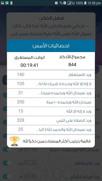An app that, with the will of Allah, helps you maintain a consistent recitation of remembrance of Allah. The app reminds you of the times of remembrance with sound notifications that alert you from time to time and reminds you of your remembrance in a simple and non-intrusive way.